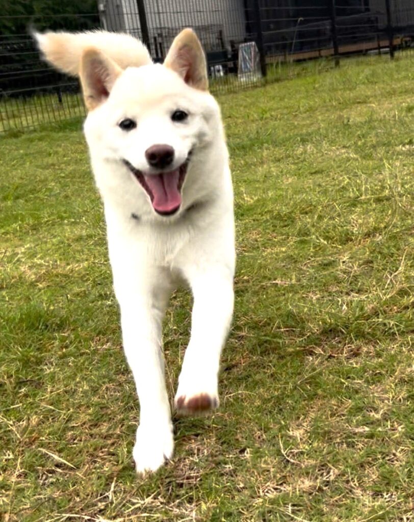 広いドッグランで楽しそうに過ごしているスズちゃんに