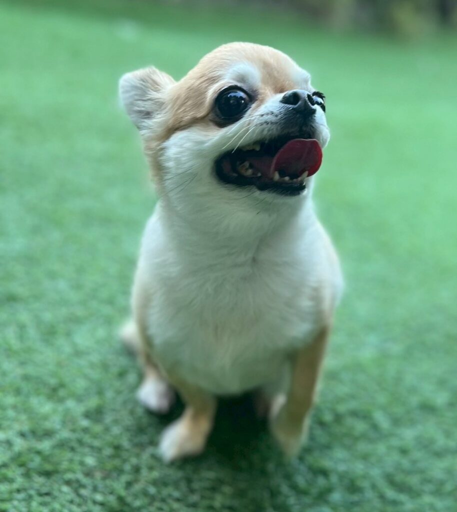 3歳のチワワ、もなかちゃんのおふたりはとっても仲良しコンビです。