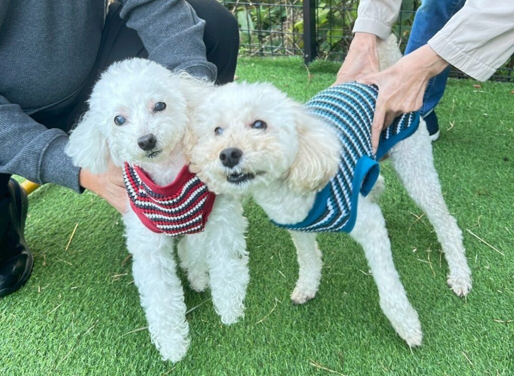 トイプードルのルミちゃんとミカンちゃん。