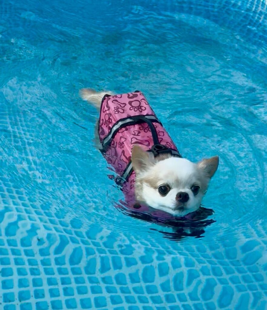 プールは普段おうちの近くのドッグランでも入っているそうなので自信満々です!