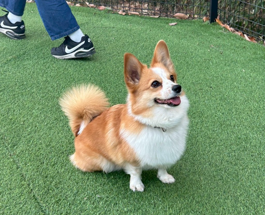 スタッフの膝に前脚をかけてしっぽをぶんぶん、喜んでくれていました。